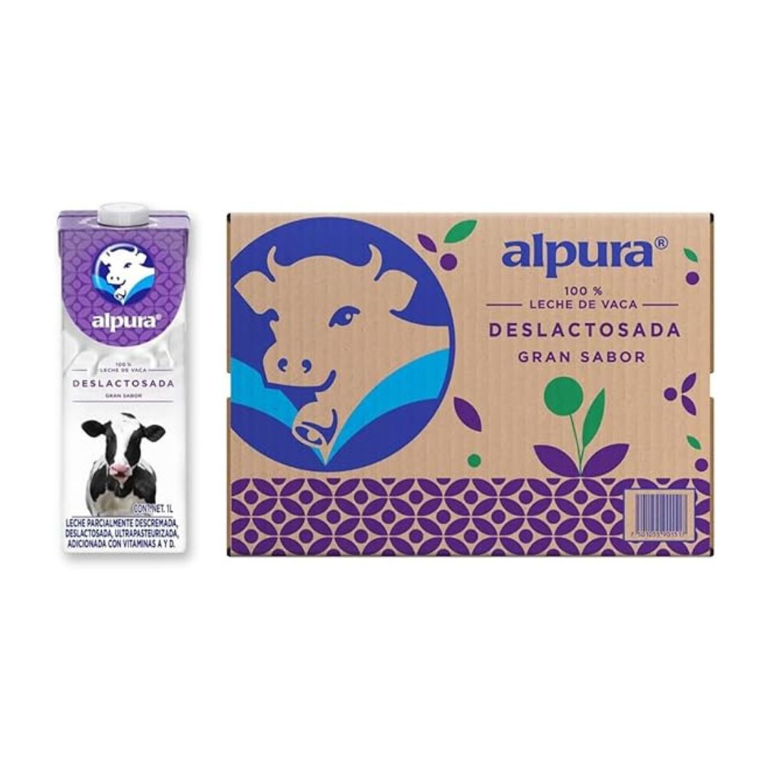 • QUE CONTIENE: Paquete de 12 Piezas de leche Alpura Deslactosada de 1 Litro cada una.