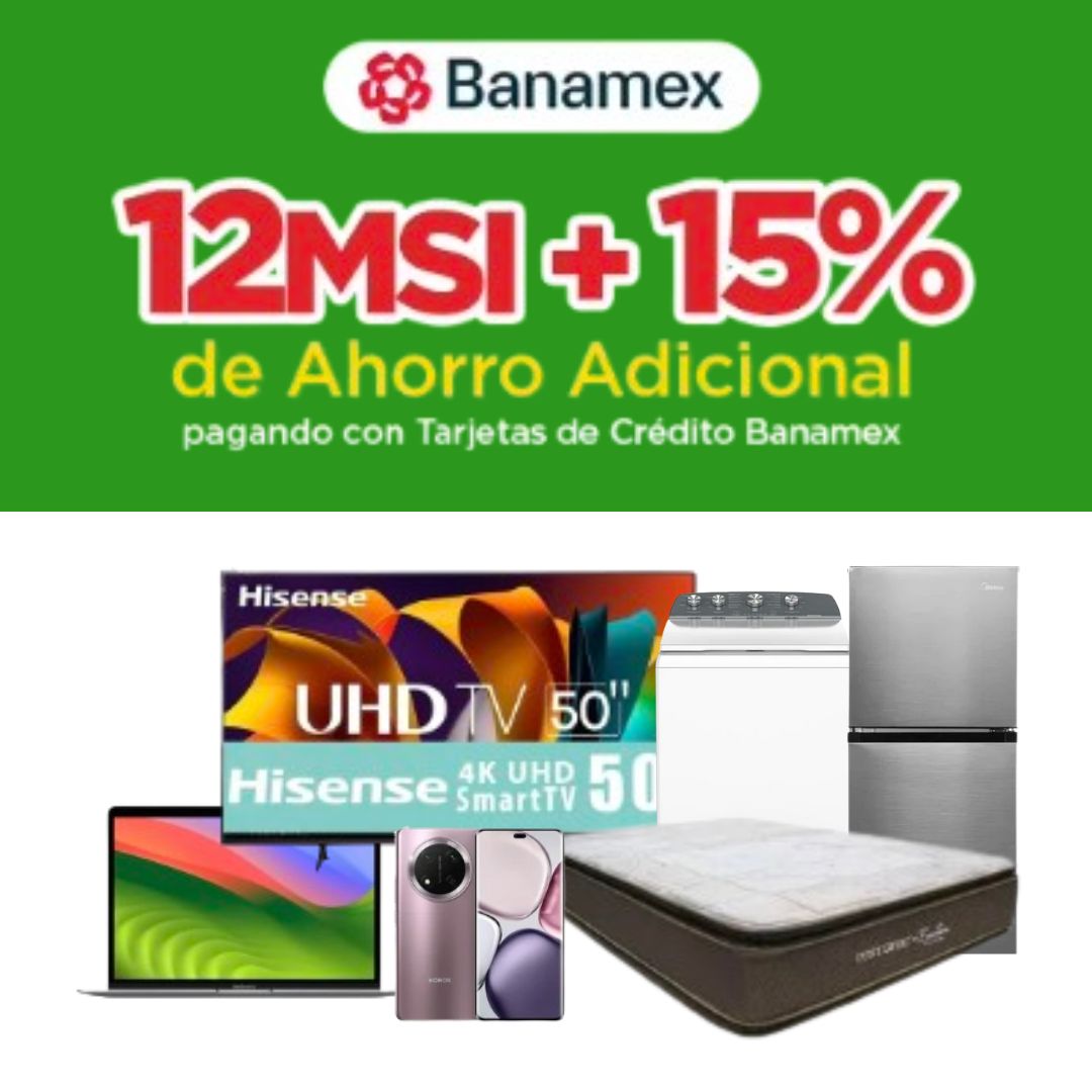 Bodega Aurrera: 12 MSI + 15% de Ahorro Adicional pagando con Banamex y usando el cupón: BNMX8SE