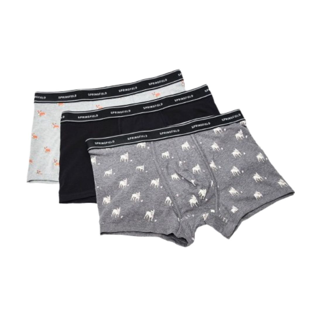 Set Springfield de 3 bóxers en tejido de punto con nombre de la marca en pretina elástica, diferentes colores y diseños.