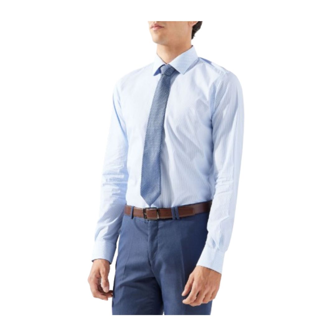 Camisa Nautica confeccionada en algodón de corte regular en tejido de punto con diseño a rayas, cuello camisero y manga larga.