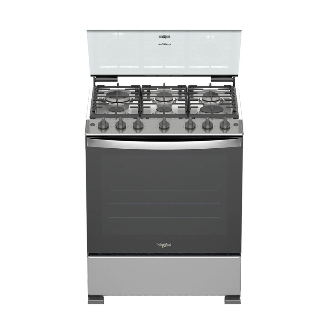 Estufa de PisoWhirlpool con comal de teflón, funcionamiento a Gas, 30 pulgadas, cuenta con 6 quemadores a gas Kick Panel en la parte inferior para mejor estética y encendido electrónico en el horno.