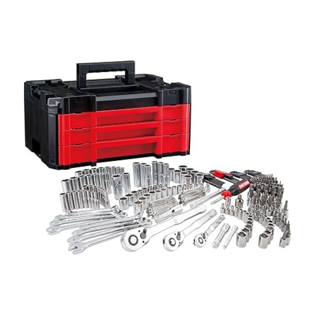 - Juego de mecánica todo en uno: contiene un surtido completo de dados, matracas, llaves y brocas especiales para entusiastas y mecánicos del automóvil, empacados en una caja duradera de 3 cajones.