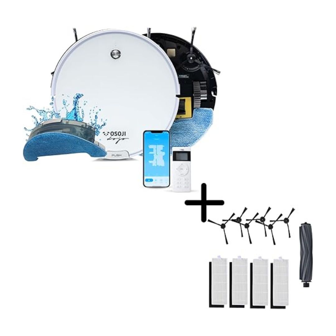- CONFIGURACIÓN DE LA APLICACIÓN SIN ESFUERZO: Con el Osoji Duo, la conveniencia está al alcance de tu mano. Su intuitivo control remoto y la configuración de la aplicación tardan menos de dos minutos, ofreciendo una operación sencilla. Ya sea que seas experto en tecnología o prefieras la simplicidad, controlar tu rutina de limpieza nunca ha sido tan fácil.