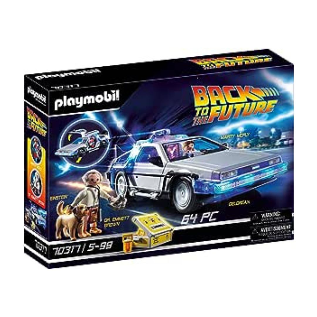 - Set incluye a Marty Mcfly y Doc Brown en sus atuendos de 1985, funda de plutonio, patineta, control remoto y Einstein, el perro; el set incluye, 2 Figuras, 1 vehículo, 1 perro y múltiples accesorios; las llantas del vehículo rotan para crear efecto volador