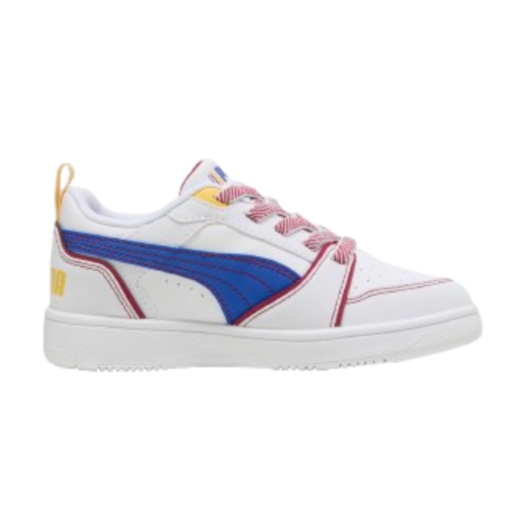 Tenis casual Puma Rebound Starblitz elaborado en piel con divertido diseño de pespuntes a contraste, icónica franja de la marca en lateral, logotipo tanto en lengüeta como en talón, punta redondeada y ajuste de agujetas. Inspirado en la cultura pop clásica y el estilo del baloncesto, el Rebound es un modelo retro informal que captura la esencia del estilo clásico.