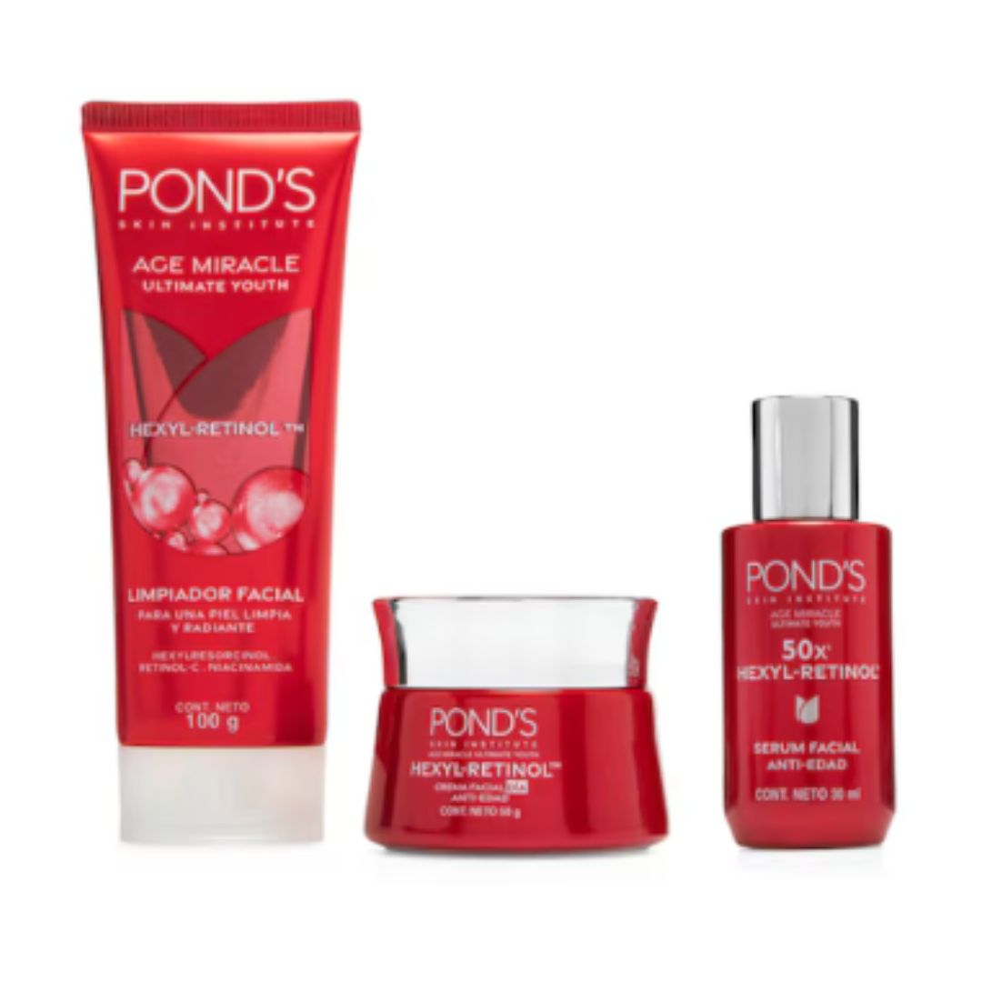 Detén el tiempo en tu piel y disfruta de una piel rejuvenecida con este set de Pond’s. Se trata del tratamiento facial Hexyl Retinol de la línea Age Miracle Ultimate Youth.