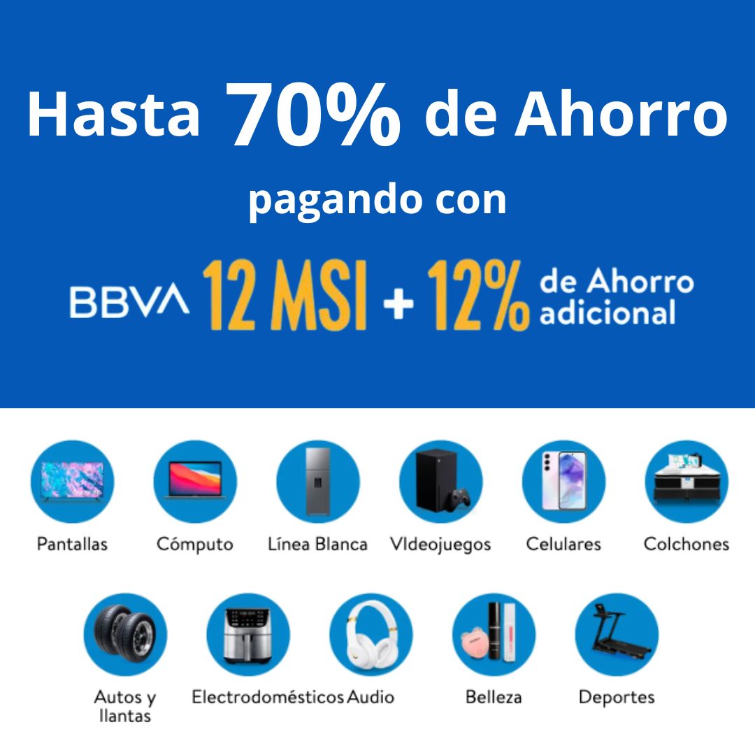 Hasta 70% de Descuento + 12% Adicional pagando con BBVA a 12 MSI con el Cupón: WBBVA9SE en Pantallas, Computo, Línea Blanca, Videojuegos, Smartphone, Colchones, etc.